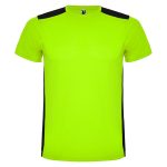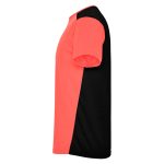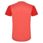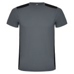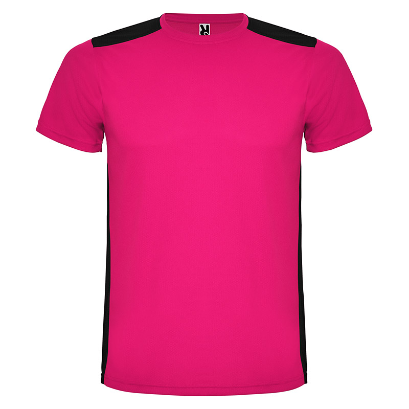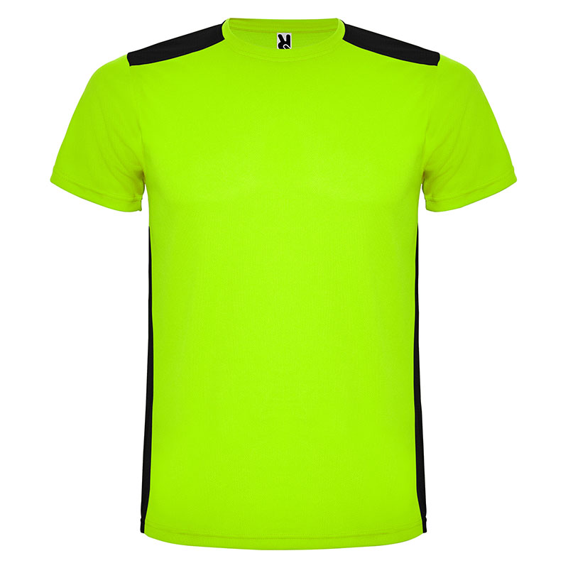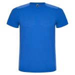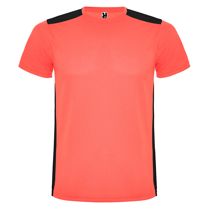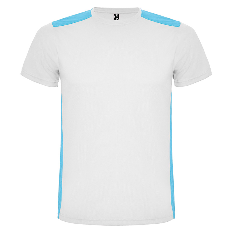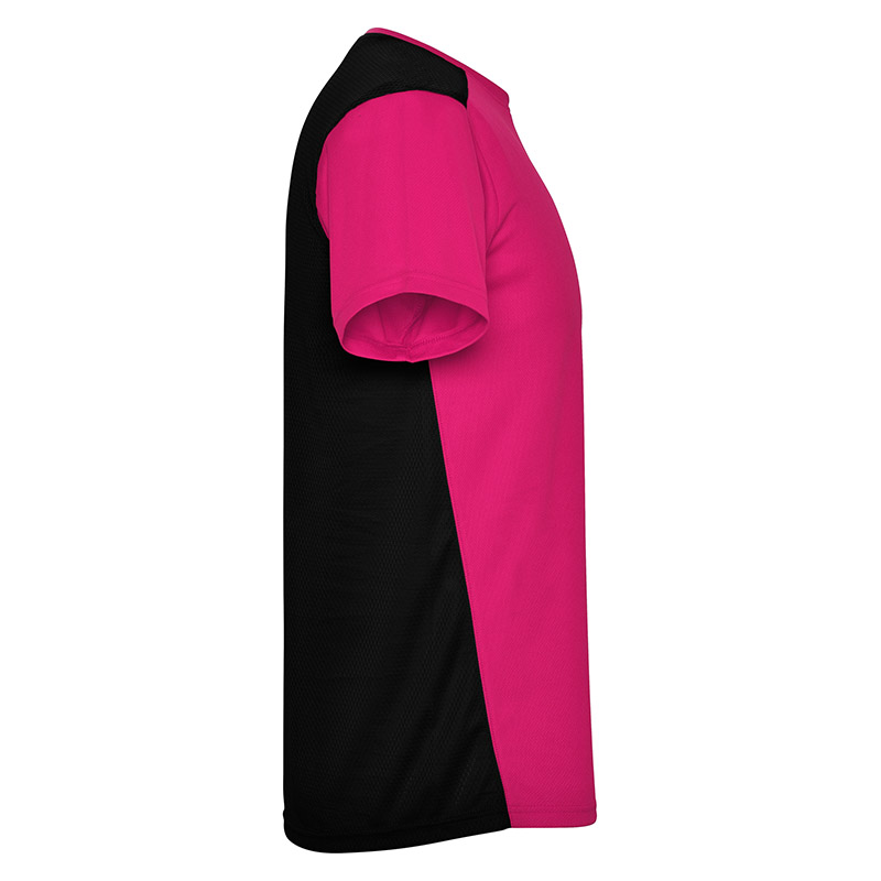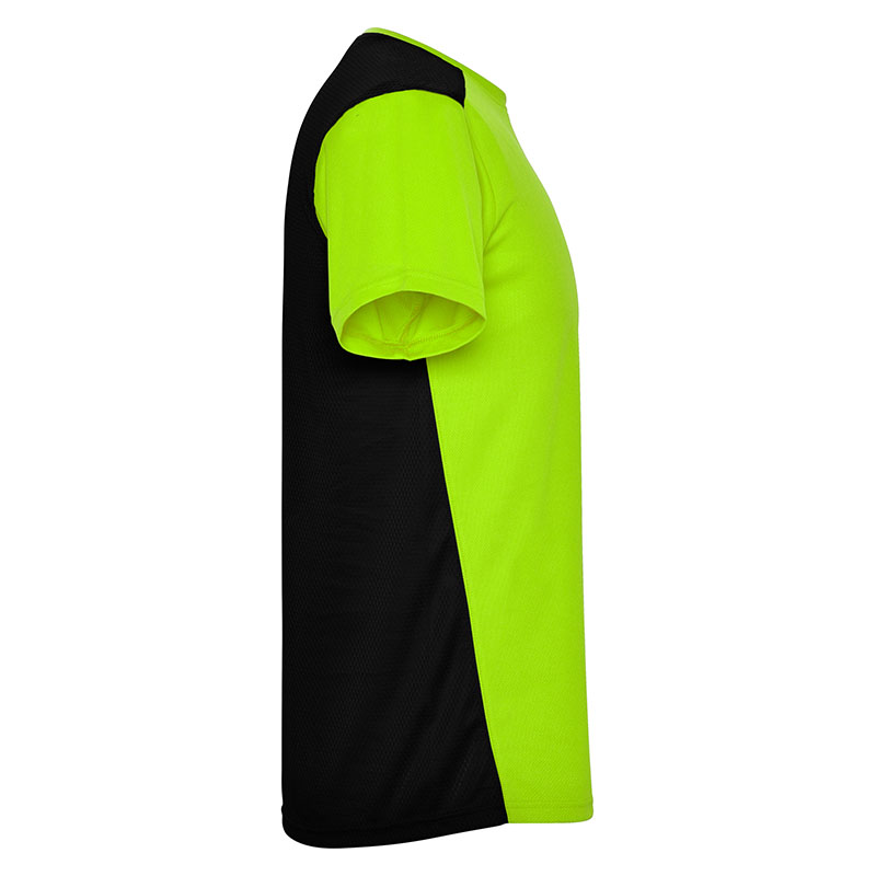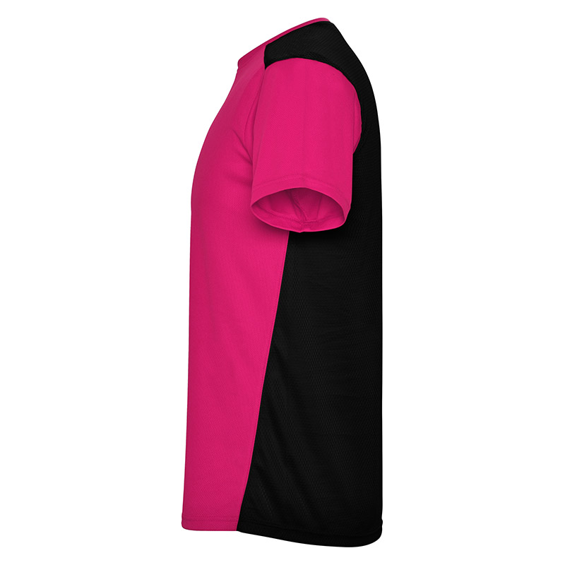 Camiseta técnica de manga corta, con cuello redondo. Combinada en espalda y hombros con dos tejidos de poliéster. Tejido principal frontal bird´s eye y tejido rejilla 3D transpirable en la parte trasera. Tejido preparado para la absorción de humedad. Pespuntes decorativos zigzag en hombros y costados frontales. Patronaje en la espalda ligeramente mas largo.